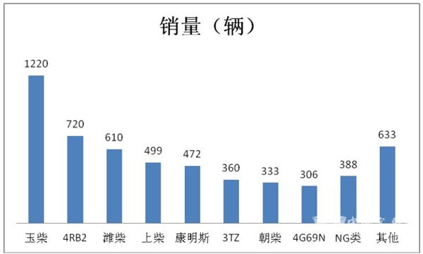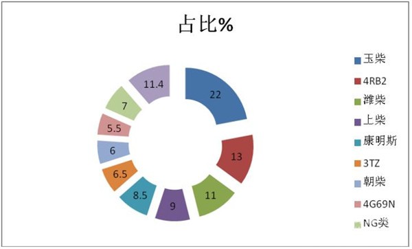 2、 汽油类中,绵阳4RB2机器占比最大,其次是重型汽油机3TZ,再次是三菱发动机4G69N.