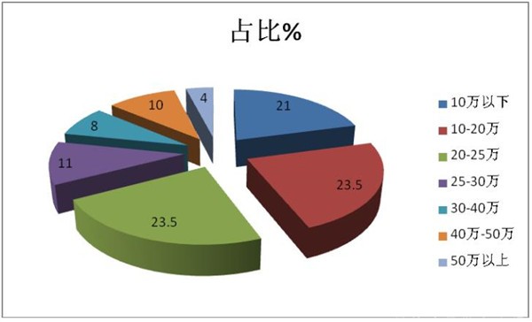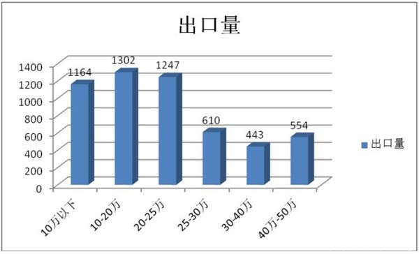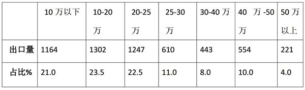 1、 2019年1月,在按价格结构划分体系中,10-20万出口比例最大,这个对应的车型主要是轻客类车型,如江铃特顺、上汽大通V80、金杯大海狮、福田图雅诺、江苏九龙海狮、大金龙凯歌类轻客,这类产品价格大多在10万-20万之间,且出口量比较大。