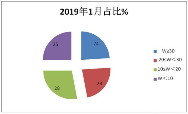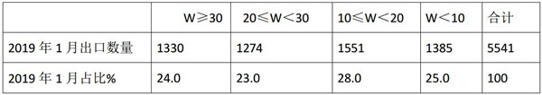 根据海关数据整理分析,2019年1月,按价格划分统计如下