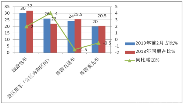 可见,2019年前2月,按业务类型划分,旅游客车市场结构中,景区(含区内和区间)用车同比份额增加最大,同比增加4个百分点,为何?