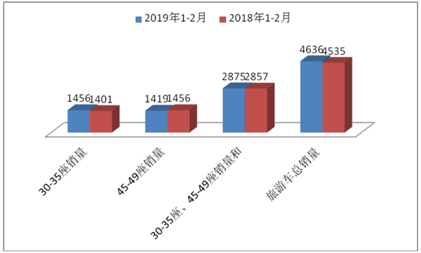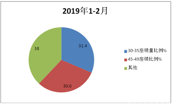 1)2019年前2月,30-35座的销量及占比同比上升,