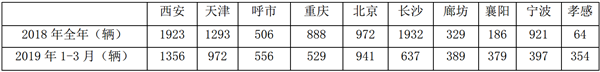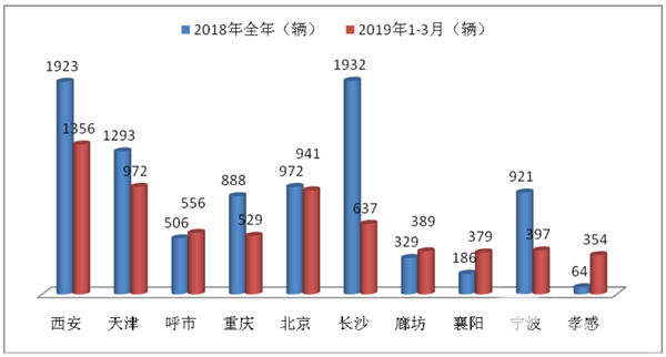 特征五:西安、天津、呼市、北京等北方省会城市的的新能源客车表现较好,部分城市2019年1-3月销量超越2018年全年