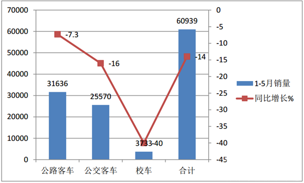 特征一:在各目标用途市场中,销量占比第一,同比降幅最小,且小于客车整体市场降幅6.7个百分点, 是抑制前5月客车整体市场下降的最大“功臣”