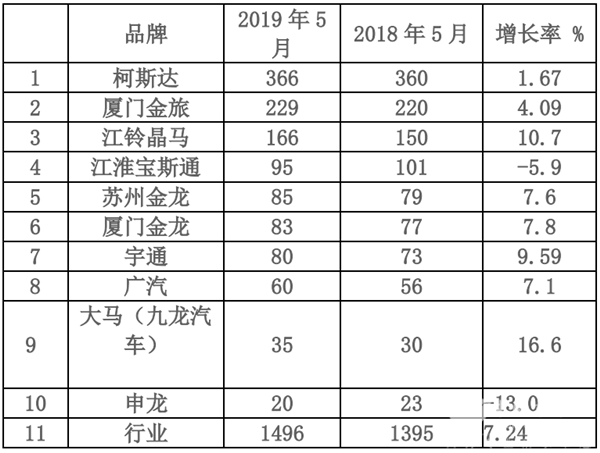 根据最新数据统计, 2019年5月累计销售中高端考斯特客车车型1496辆,同比增长7.2%,现将其销量特点及下一步市场应对策略研析之,供仿考车企业参考。