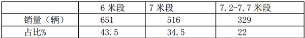 根据数据统计,5月按长度段划分,考斯特客车销量结构: