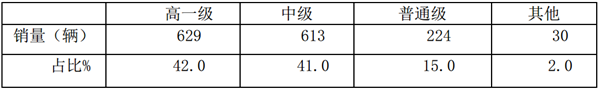 根据数据统计,2019年5月按等级划分考斯特客车销量结构