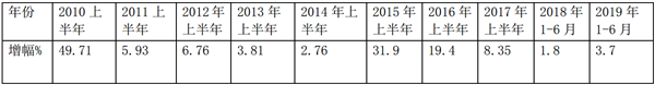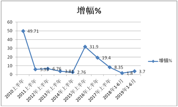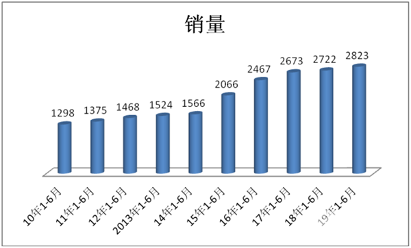 2、2019年上半年同比增幅3.7%,增幅比2018年同期增加了1.9个百分点,但仍然处于不温不火状态,这与客车市场的大环境有关。