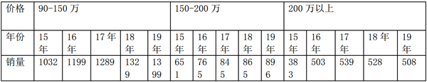通过价格来细分高档客车市场,把豪华客车的价格分成三个区间90—150万,150—200万,200万以上,这样分析起来就比较方便和清楚一些。