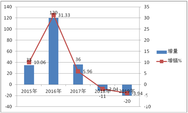 1、2015年1—6月份到2019年1-6月份,对价格在90万-150万之间的销售情况分析可知,此区间的客车销量均是逐年上升,近5年来上半年价格在90-150万区间客车销量增长和增幅情况