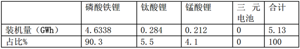 根据起点研究院(SPIR)锂电大数据显示,2019年1-6月,新能源客车动力电池总的装机量为5.13GWh,从电池类型来看,磷酸铁锂装机量为4.6338 GWh,占比90.3%,钛酸锂电池装机量为0.284 GWh,占比5.5%,锰酸锂电池装机量为0.212GWh,占比4.1%,没有三元电池。