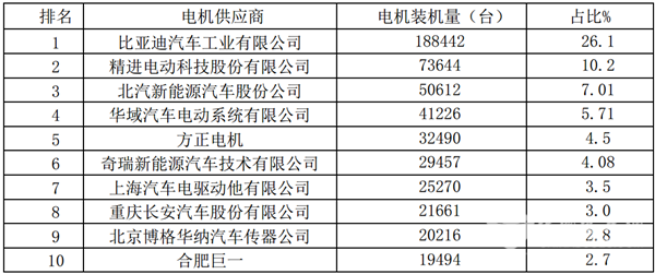 1、1-7月,根据工信部合格证数据,新能源乘用车车电机装机量前10名,比亚迪汽车占据老大,份额超26%,前10名累计份额达近7成