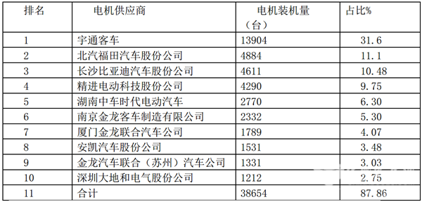 1、新能源客车方面,由于较早涉猎新能源领域,故大型客车生产企业均能够实现自主电机配套。