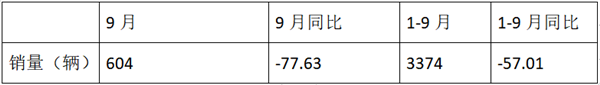 2、1-9月累计销售3374辆,同比下降57.01%,从销量上看,表现也不太好。