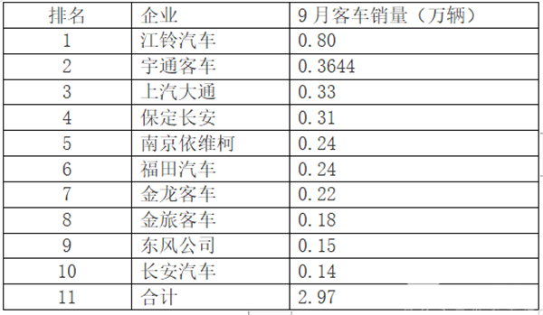- 9月客车终端市场:中客电动化率最高 宇通\江铃分获大中客\轻客冠军