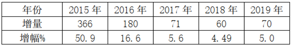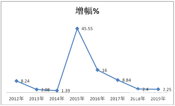 2012-2019年近8年前三季度高档客车市场增幅统计%,表1
