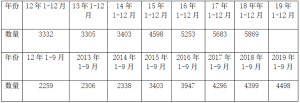 1、2012年-2019年及其三季度,价格在90万以上的豪华客车销售情况统计:表2,单位:辆