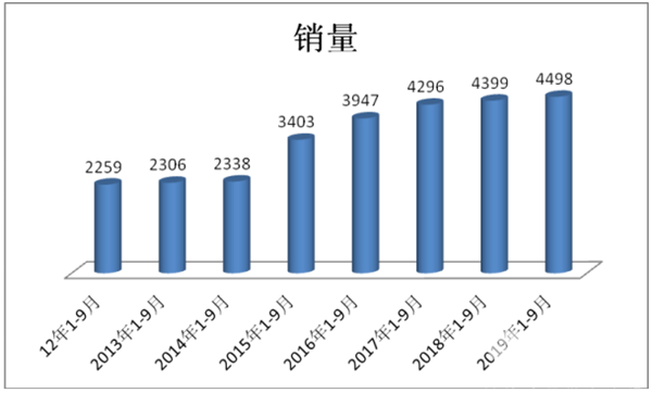 2019年前三季度高档客车销量总体增幅为2.25%,同比2018年2.4%的增幅微弱减少,比2017年、2016年、2015年增幅收窄更多,可见高档客车市场增幅近年一直处于持续递减中,高档客车市场增长乏力。