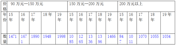 2、按价格区间划分统计2015年1-9月至2019年1-9月近5年高档豪华客车销售数据(表3),单位:辆