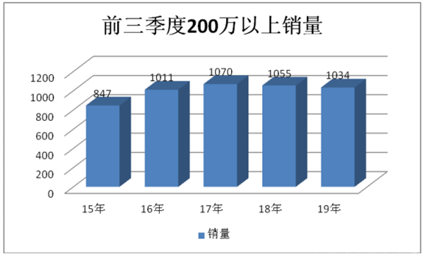 2)2015年1-9月到2019年1-9月,对价格在150-200万的销售情况分析:此区间的销量从2015年到2019年9月,销量呈现上升,2016年上升幅度最大。具体见表5和下图