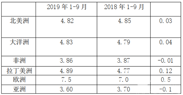 根据海关统计口径,2018年9月及1-9月我国客车出口到世界各大洲的单台均价(万美元)统计表,表4