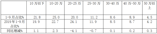根据海关数据整理分析,2019年1-9月,按价格划分统计如下