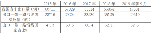 根据海关数据,我国2019年前三季度客车出口一带一路沿线国数量及占比统计