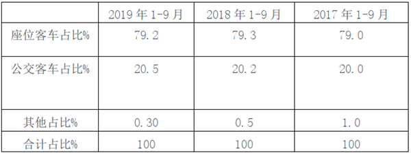 根据海关数据统计,2019年前三季度,按目标用途划分,座位客车与公交客车占比: