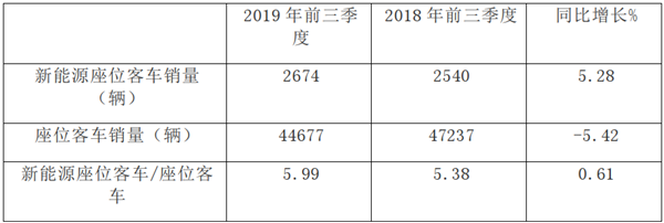 根据中国客车统计信息网数据,2019年前三季度新能源座位客车销量同比、占比情况比较: