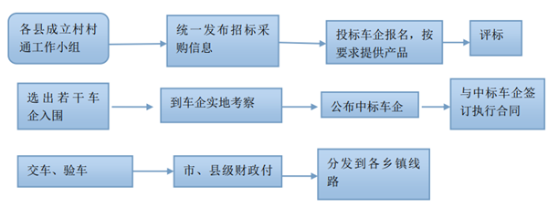 四、各县的交通运输管理部门是采购的核心部门,统一发标、招标,完成采购后配发到各乡镇指定的“村村通”线路