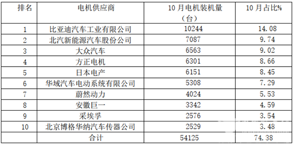 1、从新能源乘用车提供配套的电机供应商来看,10月共有54家电机生产企业实现装机配套,较之9月减少一家。