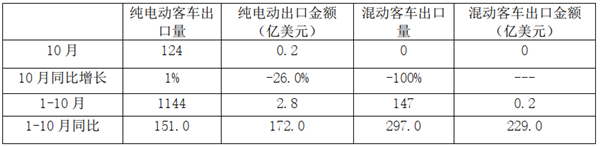可见,10月我国新能源客车出口不太理想,但1-10月累计出口增幅还是很大。