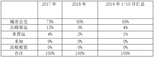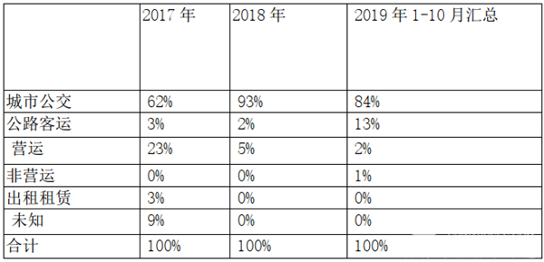 1、新能源客车的城市公交类占比逐步提升。大客2019年公交的占比相对2018年在小幅提升。
