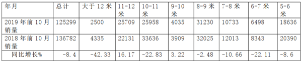 根据中国客车统计信息网数据,2019年前10月三大细分市场