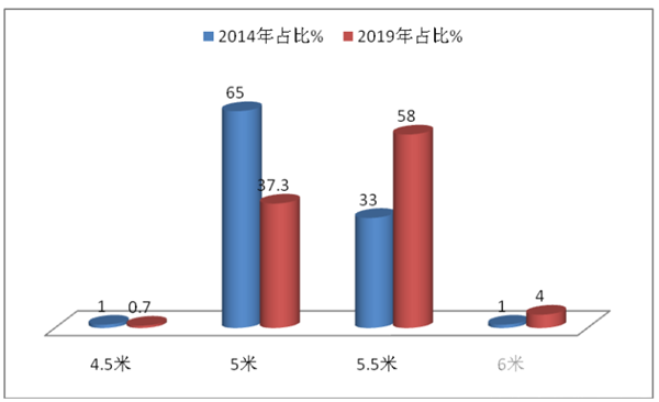可见,欧系轻客在长度米段方面有向大米段迁移趋势。欧系4.5M段在2018年基本已被淘汰。