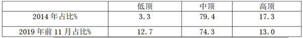2、日系轻客低顶、中顶、高顶占比变化统计表: