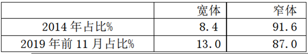 3、 日系宽体与窄体占比统计表,