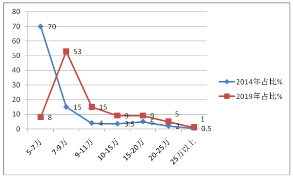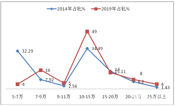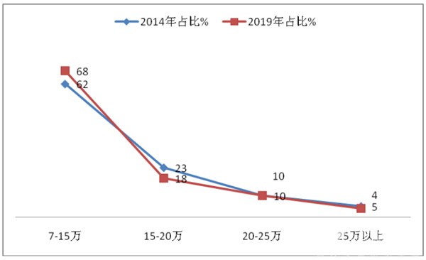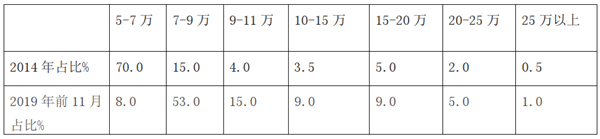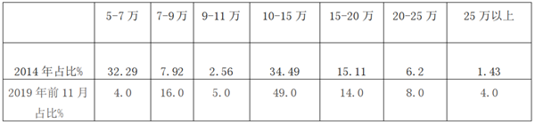 根据ABD车市统计数据,日系轻客市场价格区段比重统计