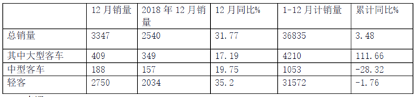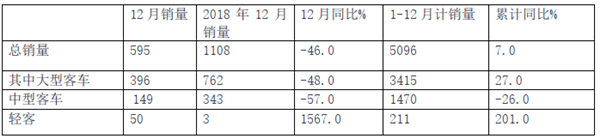 2019年12月及全年主流客车上市公司销量评析