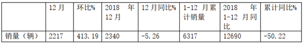 2、1-12月累计销售6317辆,同比下降50.22%,从销量上看,表现不太好,主要是前期销量同比下降较大。