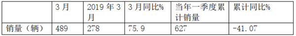 3、从一季度看,安凯客车累计销售559辆,同比下降56.97%。