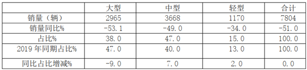 (一)从需求端对大中轻车型看,大型同比降幅最大,中型占比最高;同比大型占比减少最大;中型占比增加最多