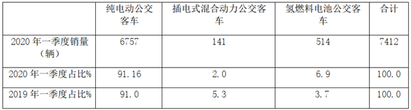 可见,按技术路线划分,2020年一季度新能源公交客车销量结构: