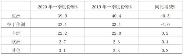 特点六、亚洲份额最大,但同比下滑;其次是拉美地区,但同比下降;第三是非洲,同比微增