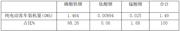 特点一、新能源客车中以安全性能最优的磷酸铁锂电池装机量占比98.26%,锰酸锂电池占比1.68%,其次是钛酸锂电池占比0.06%