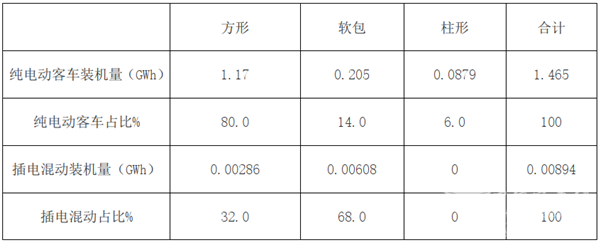 特点二、纯电动客车方形电池装机量占比8成,为最大;插电式混合动力客车中,软包型电池装机量占比近7成,为最大