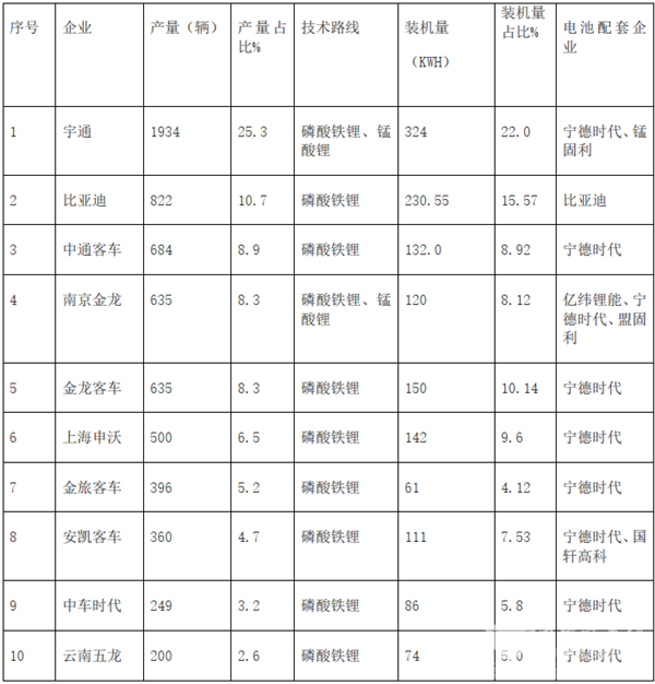 二、2020年1-4月新能源客车动力电池装机量特点简析: