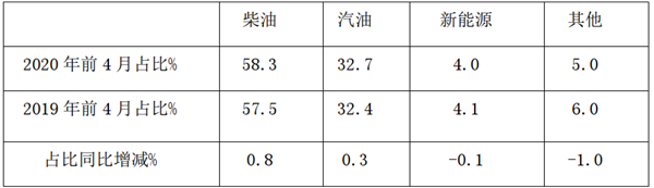 可见,在2020年前4月,按动力种类划分,公路客车销量结构特征:
