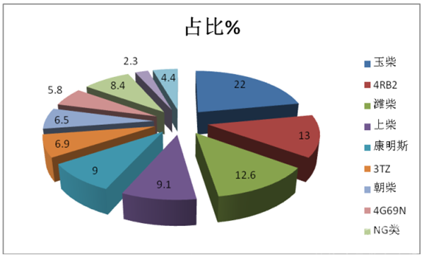 2、 汽油类中,绵阳4RB2机器占比最大,其次是重型汽油机3TZ,再次是三菱发动机4G69N.