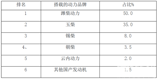 特点五、国产发动机是主打,潍柴、玉柴占主体