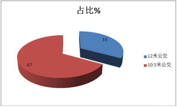 大型公交作为城市公交的主力,具有相对的大容量特点,目前市场已经形成了10.5米为主(占比近7成)、12米为辅的局面(占比3成多)。